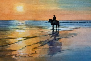 2023Aquarel met passepartout. Onderstaande maten zijn de buitenmaten van het passepartout. Past in een standaard lijst.